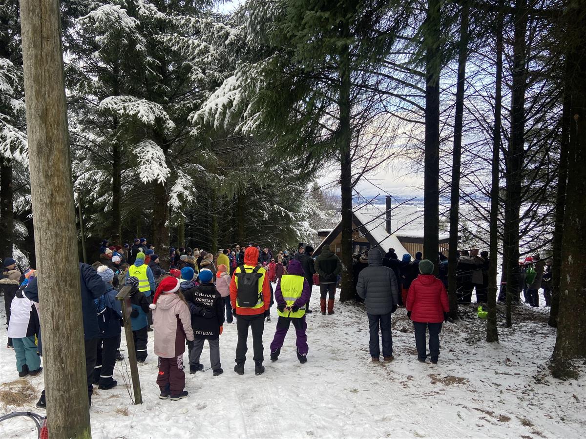 Mange kom på åpningen av dagsturhytta Solabu i Hålandskogen. På veien opp blant snødekkede trær, danset elever fra Sola kulturskole. Vel framme ved dagsturhytta spilte Alexander Brass Kvartett julemusikk. Musikalske elever ved Håland skole og Dysjaland skule og hele tre barnehager var på plass og sang. Barna hadde også med seg bøker til det lille biblioteket i hytta.