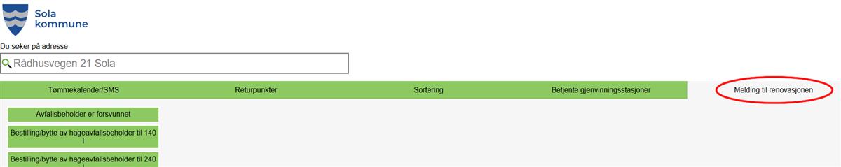 Trykk på «Melding til renovasjon»