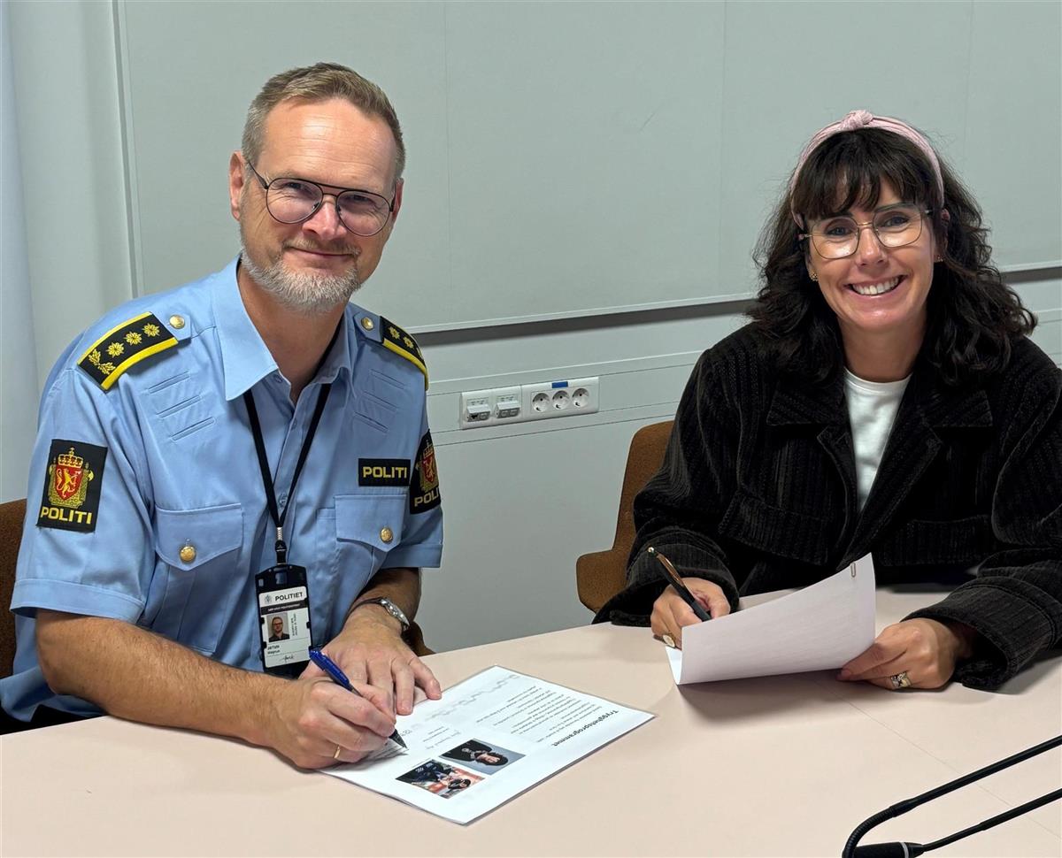 Ordfører Janne Stangeland i Sola kommune og politistasjonssjef Magnus Jåtun i Sør-Vest politidistrikt signerer samarbeidsavtale om Trygghetsprogrammet.Kort fortalt om Trygghetsprogrammet