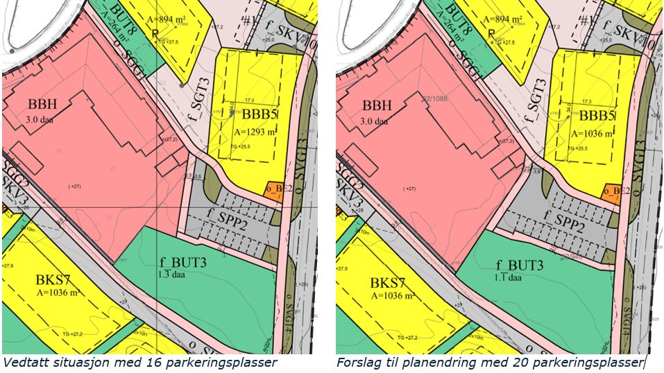 Formålet med endringen er å regulere antall parkeringsplasser for Eikeberget barnehage i samsvar med dagens situasjon. Antallet parkeringsplasser økes i planen fra 16 til 20 som gir ca. 0,33 parkeringsplass per barnehagebarn.