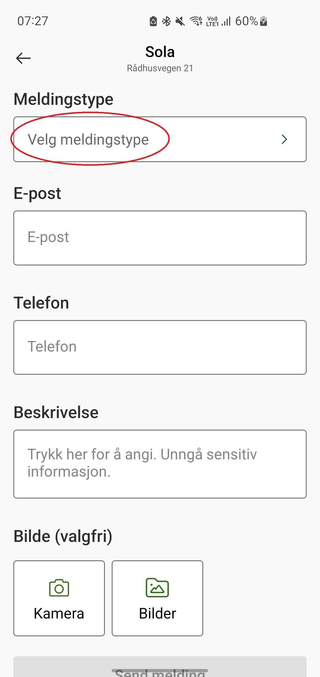 Slik sender du melding til renovasjonNedenfor finner du veiledere til hvordan du kan sende meldinger til renovasjon i appen MinRenovasjon eller via tømmekalenderen på nett. Veileder: Slik sender du melding i appen Trykk på «Tjenester» og Logg inn via ID-portenTrykk på «Meldinger»Trykk på «Send ny melding»Velg meldingstypeTrykk på «Send melding» til slutt Nedenfor ser du skjermbilder som viser hvor du skal trykke. 1. Trykk på tjenester og logg inn via ID-porten2. Trykk på Meldinger3. Trykk på Send ny melding4. Velg meldingstype, beskriv feilen og trykk på send melding til slutt Veilder: Slik sender du melding på nett Start med å skrive adressen dinTrykk på «Melding til renovasjon»Trykk på kategorien du vil melde feil om. Beskriv feilen og skriv inn telefonnummer og e-postadresseTrykk «Send melding» Nedenfor ser du skjermbilder som viser hvor du skal trykke. 1. Skriv inn adressen din. Trykk på «Melding til renovasjon» Har du spørsmål?Lurer du på noe mer om avfall og gjenvinning? Du finner all informasjonen du trenger på sidene for Avfall og gjenvinning. Publisert 31.03.2026 11:53 Sist endret 31.03.2026 13:40